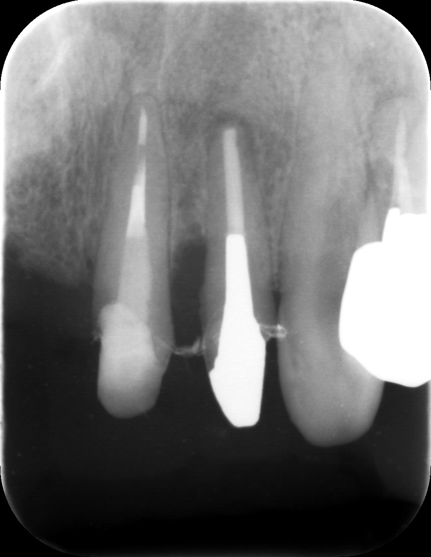 ピエゾサージェリーという超音波機器を今年導入してから、歯周外科がそれまでよりもスピーディーに行えるようになりました。前歯の審美障害と歯周治療希望で来院された患者さんです。犬歯の下がった歯肉は完全でなくてもある程度カバーできればいいというご希望だったので歯肉移植はしませんでした。その労力が省けた分、歯周組織再生療法を同時に行うことができました。術式も今年の3月に学んだばかりの方法で行いました。術後まだ10日なので歯肉の形は落ち着いていませんが、数か月待ってブリッジの型取りに行ければと思います。いつも準備やアシストをしてくれるスタッフには本当に感謝です。とても一人ではできないと常々思います。